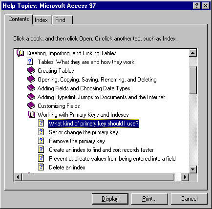 Creating relationships between tables in a database is beyond the scope of this course. For more information see the see the Microsoft Access Help topic "What kind of primary key should I use?" and "About relationships in a database."