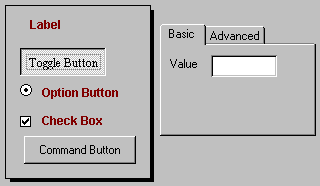 Did you find them all? (Don't forget the rectangle control on the left and the text box control inside the tab control on the right.)