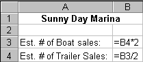 consider a marina that sells twice as many boats as trailers. The spreadsheet