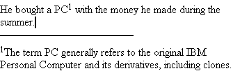 Footnotes are useful for documenting references in research papers, and for adding comments that are subordinate to the main ideas in your document. Footnotes are displayed at the bottom of the page where they are referenced.