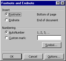 a number or symbol. The footnote illustrated above shows a numbered footnote. To insert a footnote into your document: