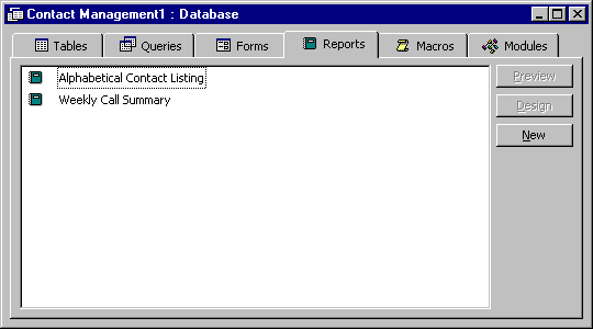 Figure 2. Object Types in an Access Database