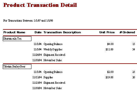 A report is another type of object used in most databases. A report specifies how data in the database will be printed (usually to paper). Here is an example of a printed report: