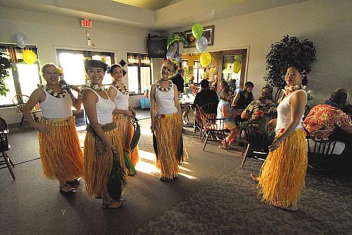Nikoria Hula Dancers performing at a recent Hawaii 5-0 Party. Michelle, Gayle, Ann, Nicole, & Amelia