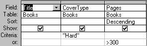 A compound query is a query that specifies two or more conditions, combined using the logical and and or operators. For example, the following query specifies books with that have a cover type of Hard OR more than 300 pages