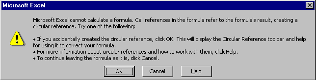 There may be instances when you want to use circular references. For more information, see the help topic under Help/Contents and Index/circular references.