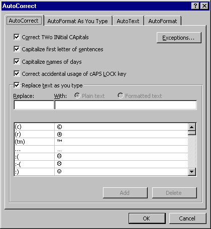 Word also has a very useful feature called AutoCorrect that corrects common typing errors automatically, as you type. These include errors such as teh for the, ahve for have, or starting a new sentence without a capital letter. Often, even before you notice that you have made a mistake, it is corrected!