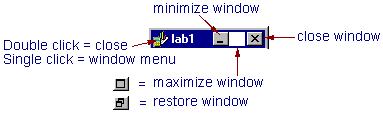 The icon at the left corner of the title bar if clicked twice will close the window and remove your document from the computer's memory. If you have unsaved changes you will be allowed to save them. Click it once to get a menu of commands that can be applied to the window.