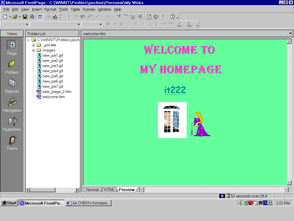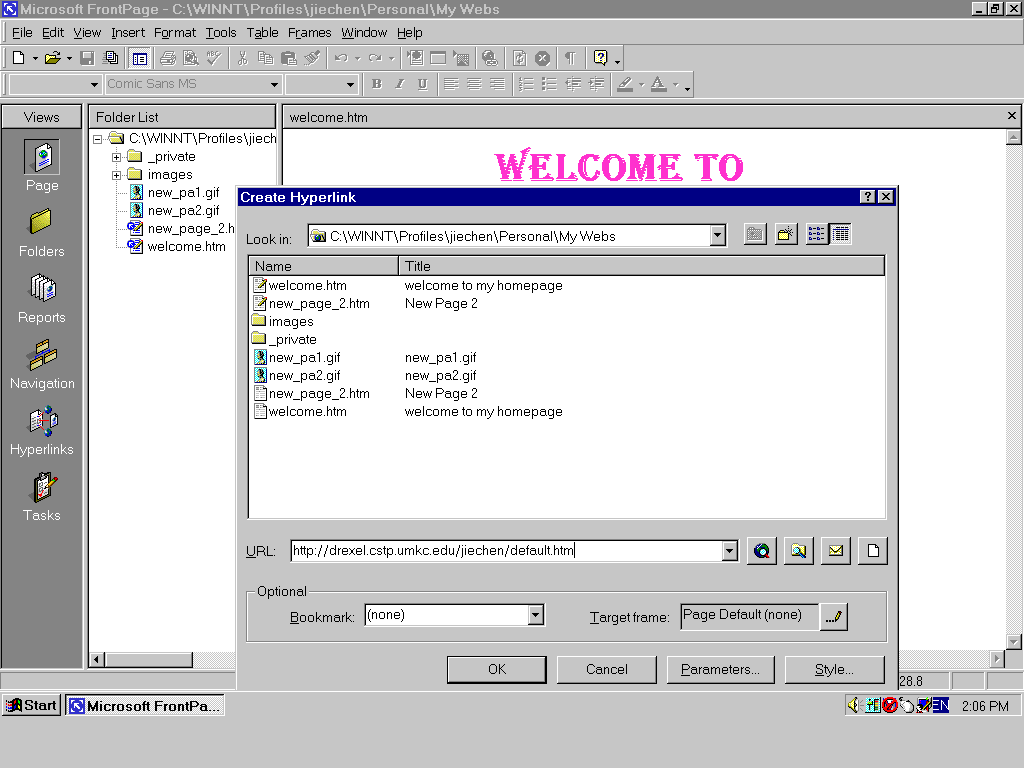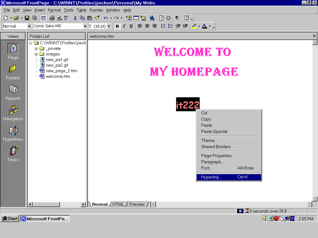 Right now, I am going to create a hyperlink to my it222 default