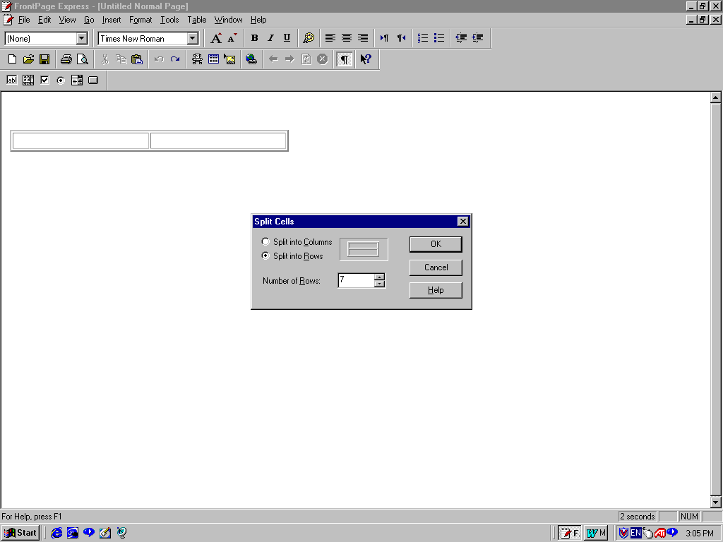 Step 5: Let us put the cursor in the right row, we are going to split this row into seven