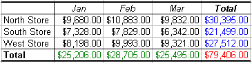 Let's use an example. Here's a spreadsheet being used to record retail sales at three stores: